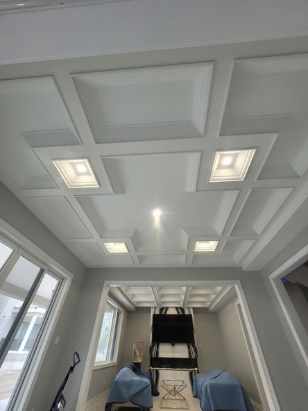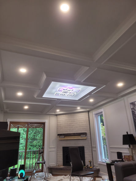 Elevate your space with our custom designs and precise installations tailored to your needs. From coffered ceilings and wainscoting 3D wall panels and full basement renovations, we guarantee meticulous attention to detail and a flawless finish in every project.